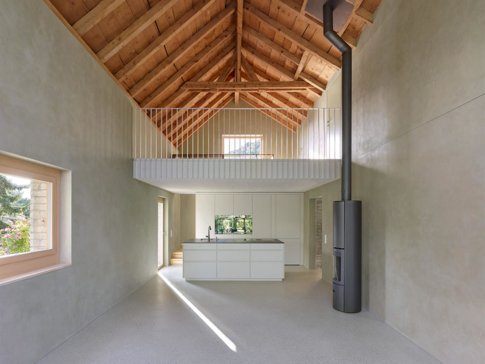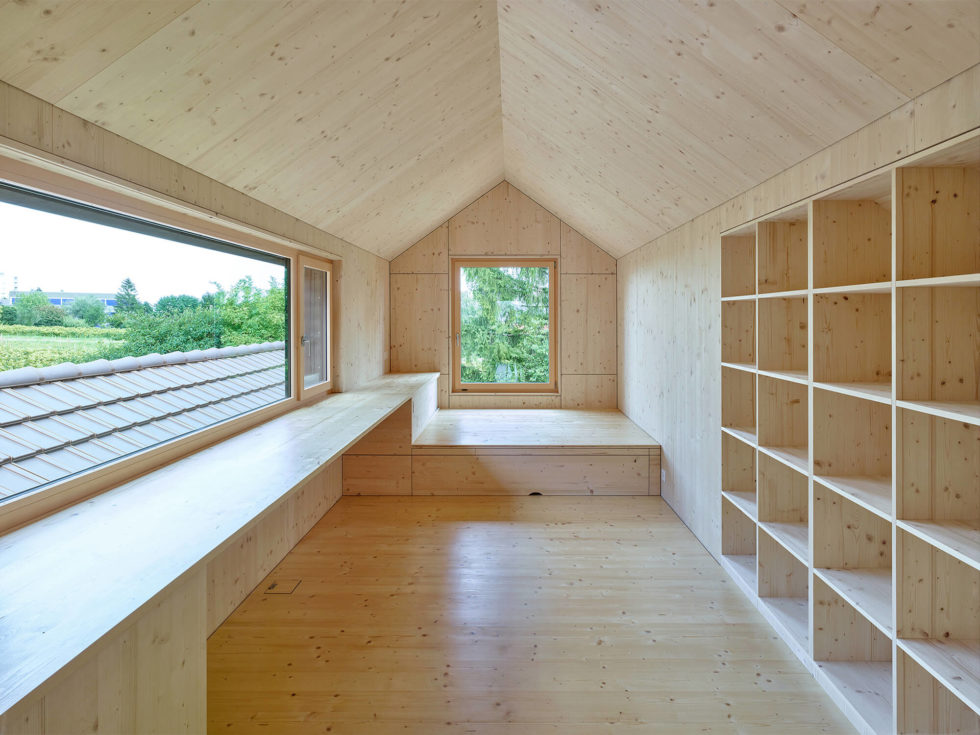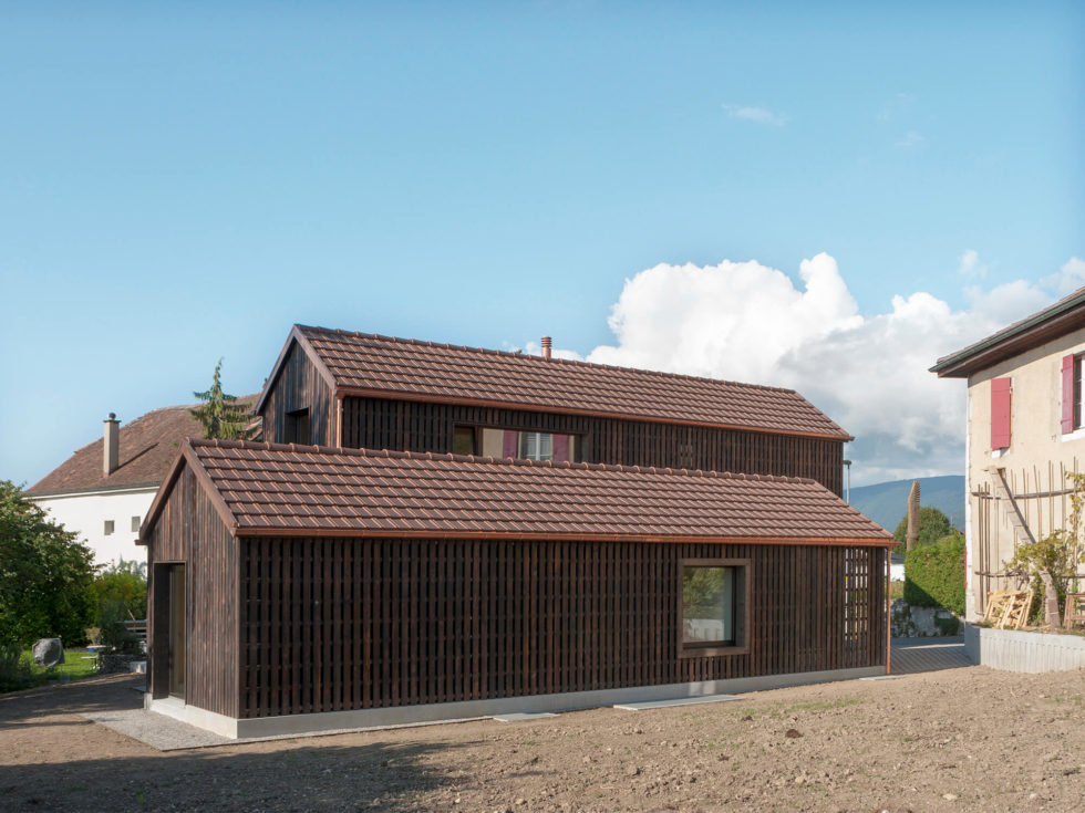 L’ossature a été réalisée avec du bois certifié Suisse et la façade est en sapin blanc de la forêt avoisinante.